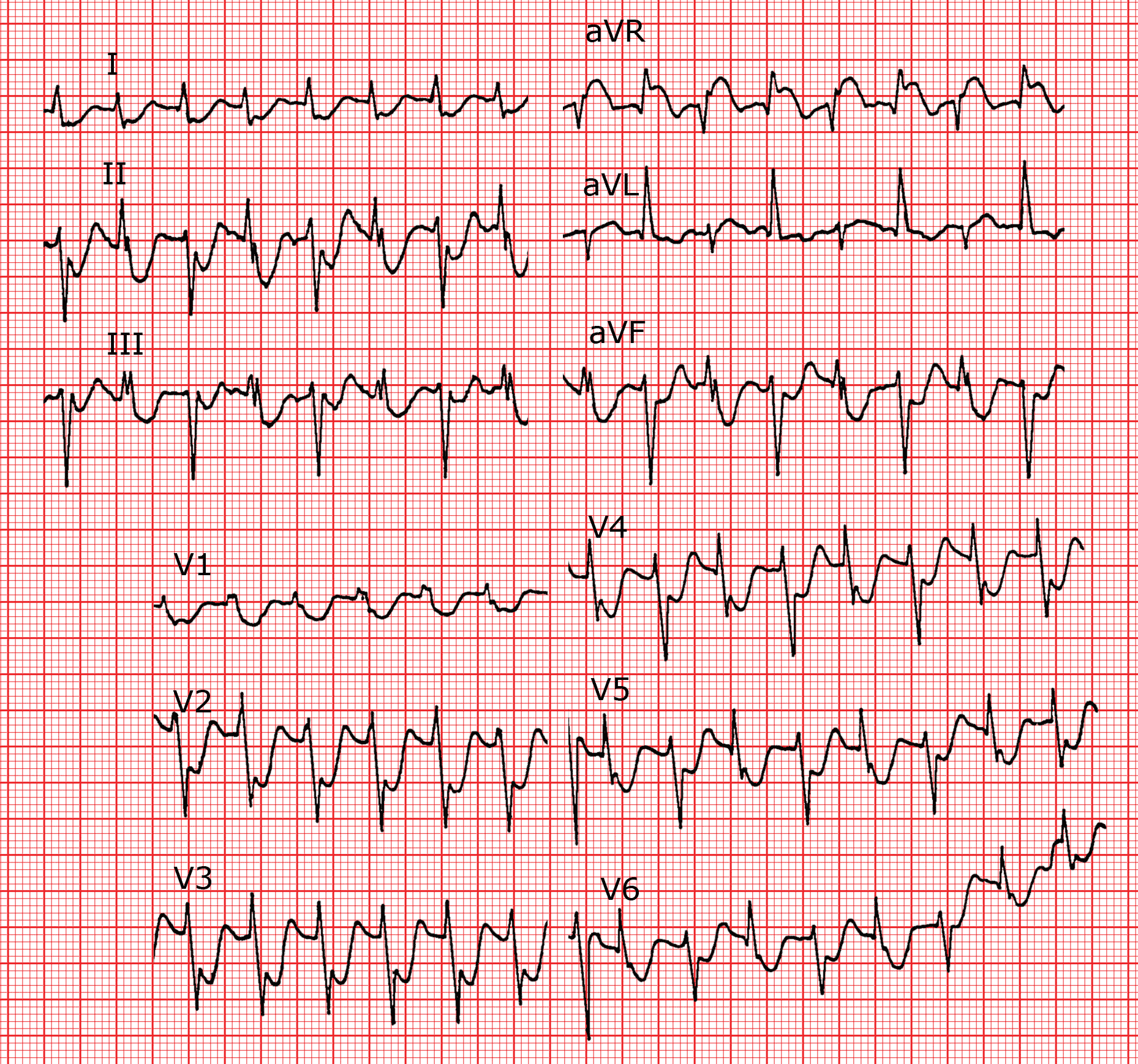 Digitalisintoxikation, gelegentlich besteht eine bidirektionale Tachykardie, wie auf diesem EKG.