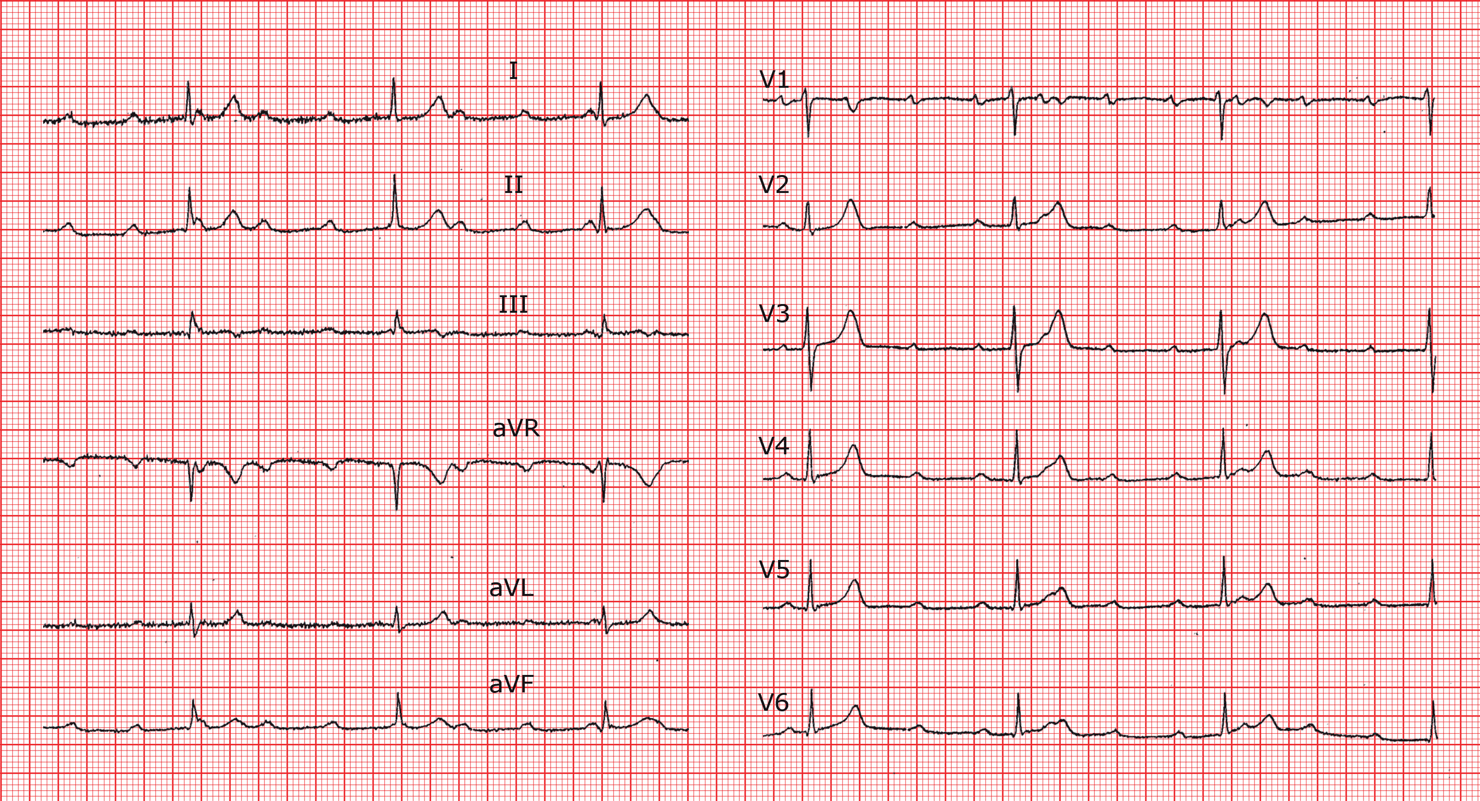 Bloc A-V du premier degré.Rythme sinusal avec un prolongement de l'espace PQ à 240 ms correspondant à un